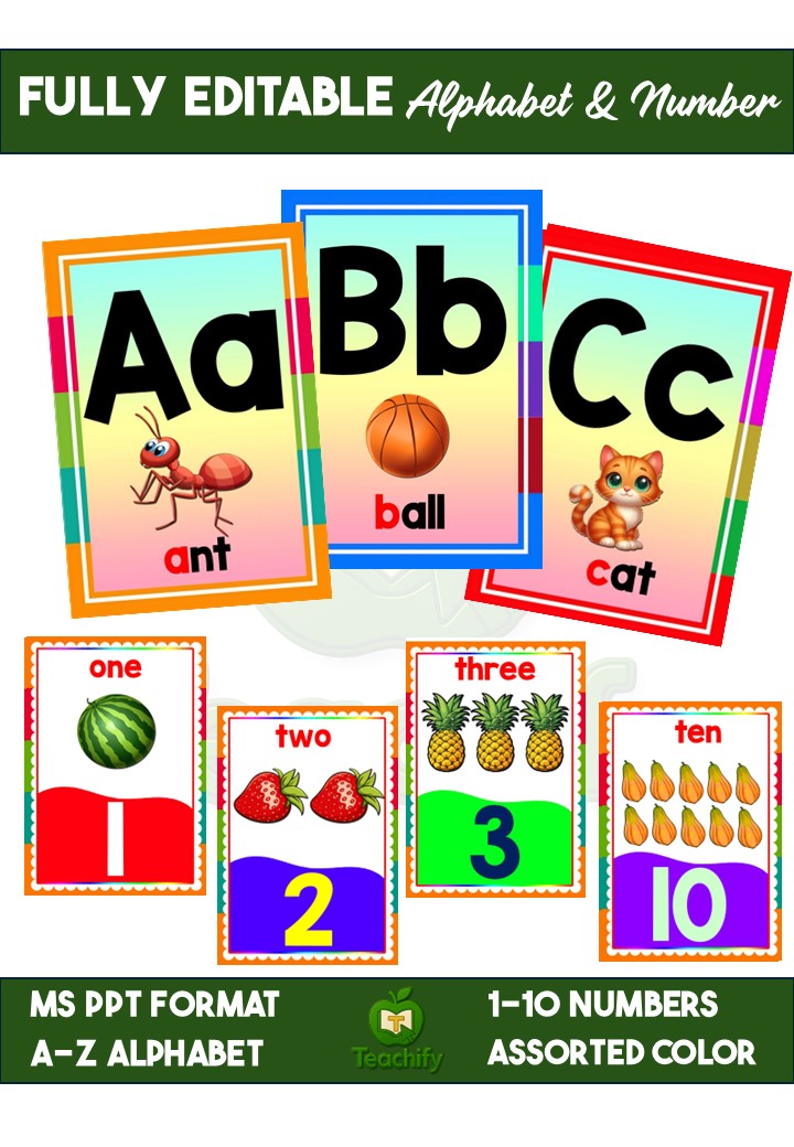 Teach letter recognition and early literacy skills in English! This editable alphabet set is perfect for classroom or home use, making learning letters and numbers interactive and fun.