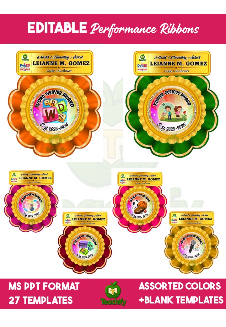 Elevate your recognition ceremonies with these DepEd-aligned Performance Ribbons, based on DepEd Order No. 36, s. 2016. Perfect for Kinder learners and ideal for both public and private schools.