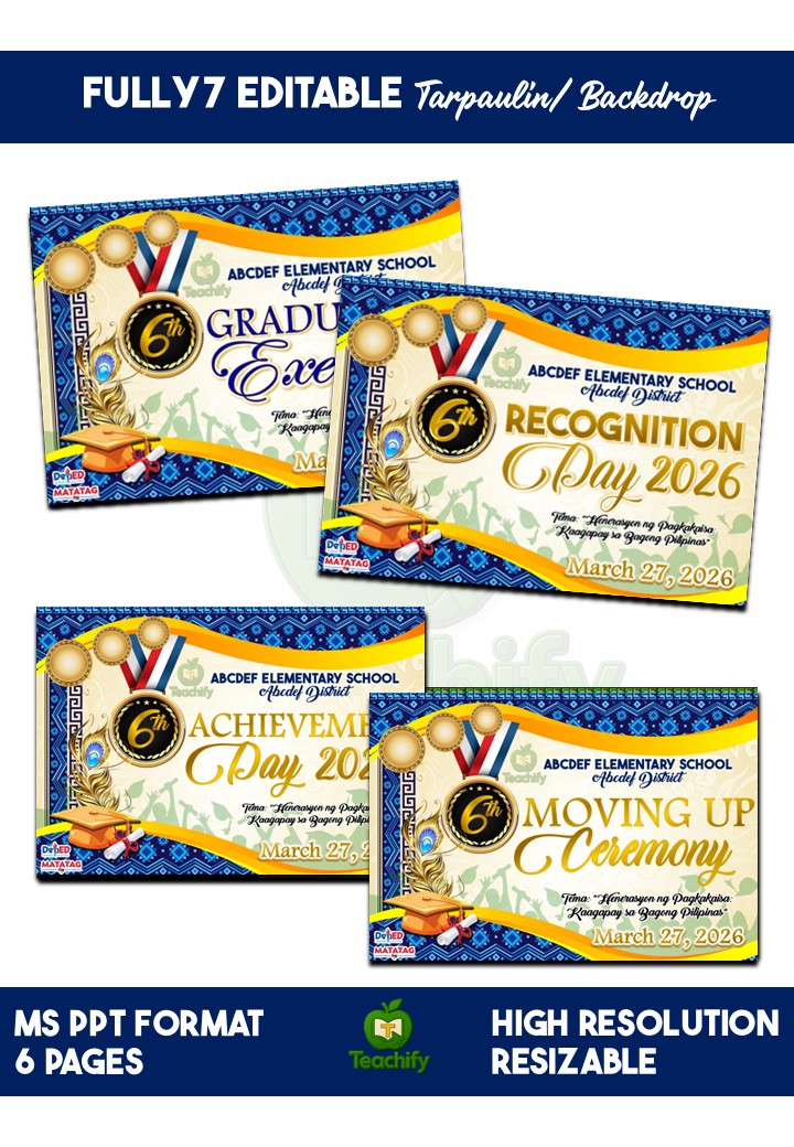 Elevate your school’s milestone events with a complete, beautifully designed, and fully editable template package. Perfect for Graduation, Moving-Up, Recognition, and Achievement Ceremonies, this collection brings elegance, organization, and cultural-inspired style to any school celebration.