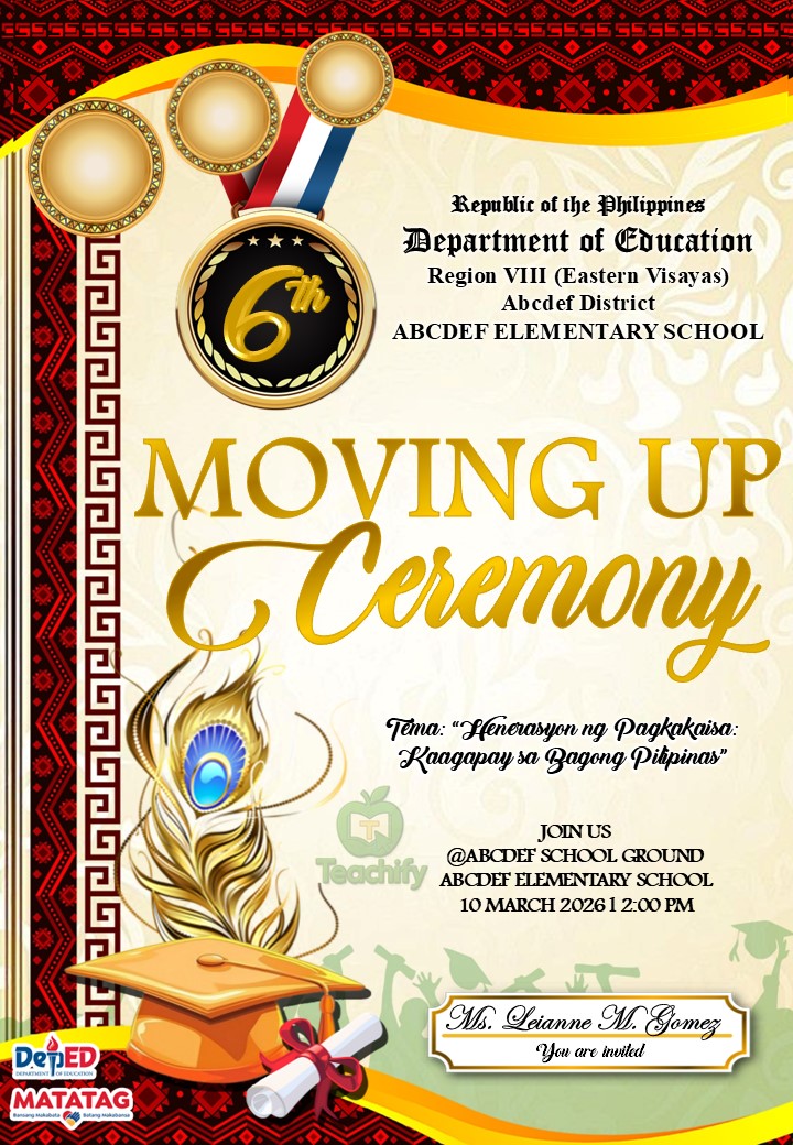 Elevate your school’s milestone events with a complete, beautifully designed, and fully editable template package. Perfect for Graduation, Moving-Up, Recognition, and Achievement Ceremonies, this collection brings elegance, organization, and cultural-inspired style to any school celebration.