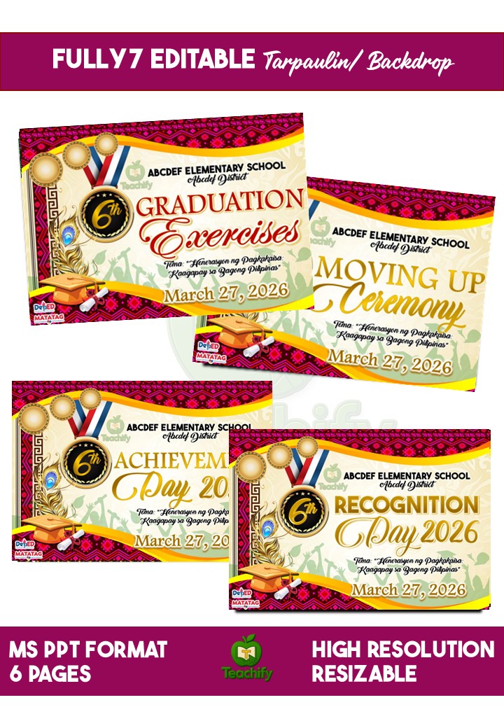 Elevate your school’s milestone events with a complete, beautifully designed, and fully editable template package. Perfect for Graduation, Moving-Up, Recognition, and Achievement Ceremonies, this collection brings elegance, organization, and cultural-inspired style to any school celebration.