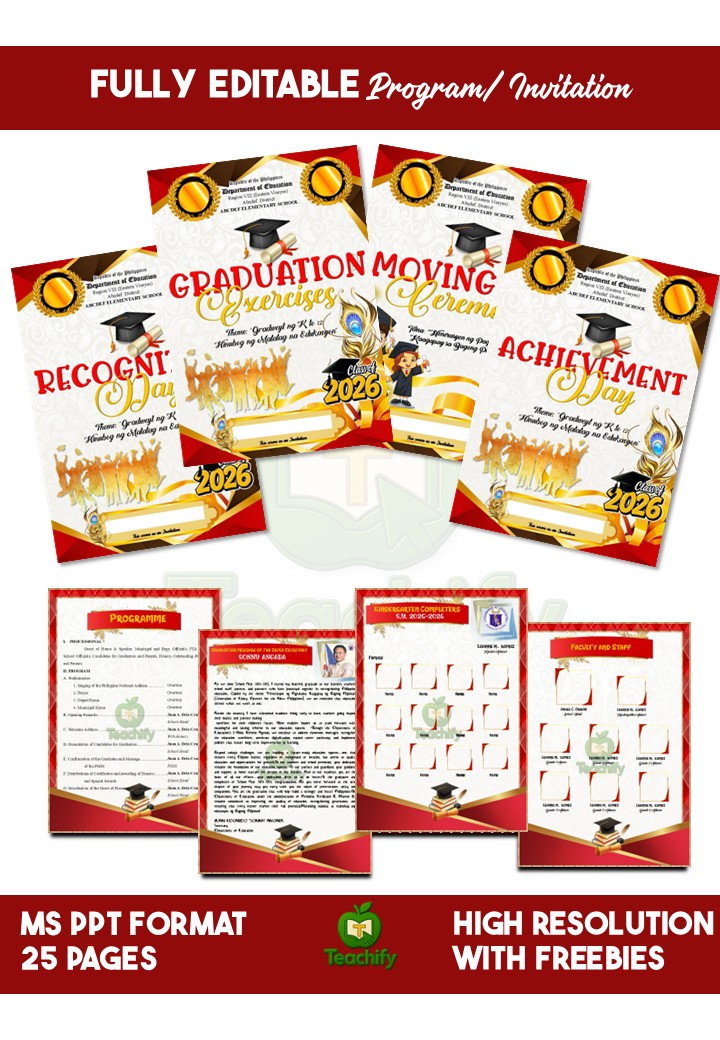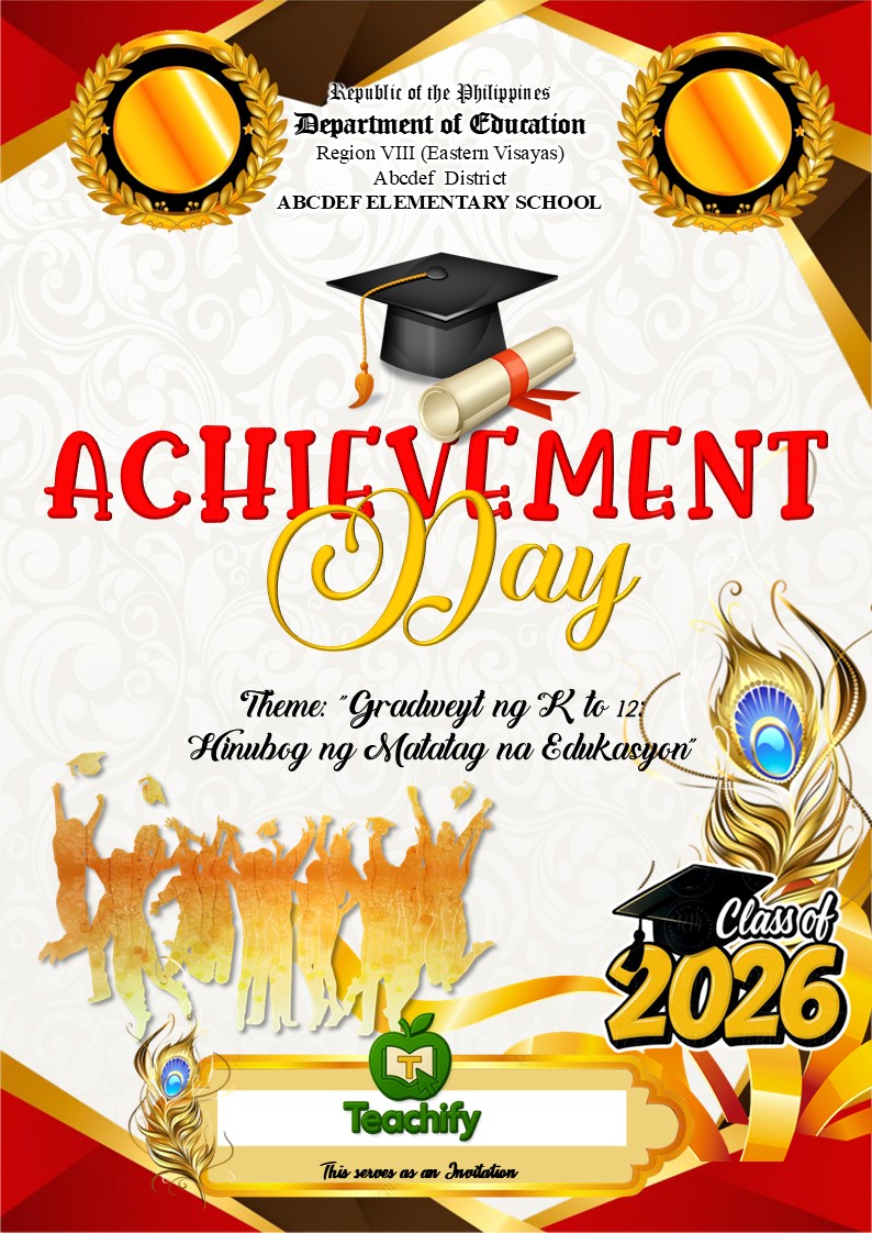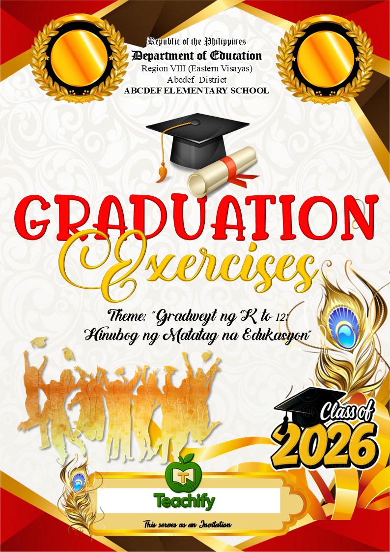 Elevate your school ceremonies with sophistication and prestige using the Maroon Royale Collection Invitation Templates—professionally designed for graduation, moving-up, recognition, and achievement programs. Featuring a deep, regal maroon palette with elegant accents, this collection brings a luxurious and formal touch to any event.