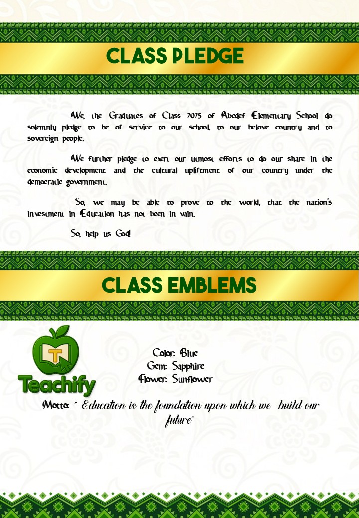 Elevate your school ceremonies with elegance and cultural distinction using the Emerald Tribal Prestige Collection Invitation Templates—professionally designed for graduation, moving-up, recognition, and achievement programs. Featuring a rich emerald green palette accented with gold and refined tribal-inspired elements, this collection reflects heritage, honor, and academic excellence—perfect for formal school events.