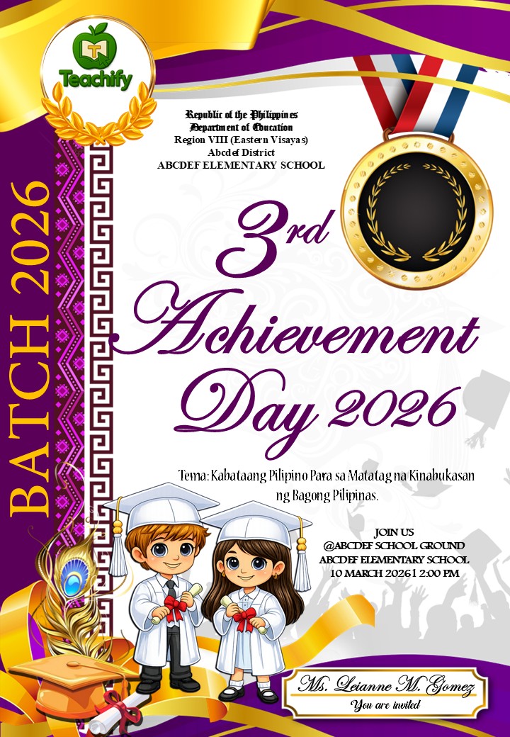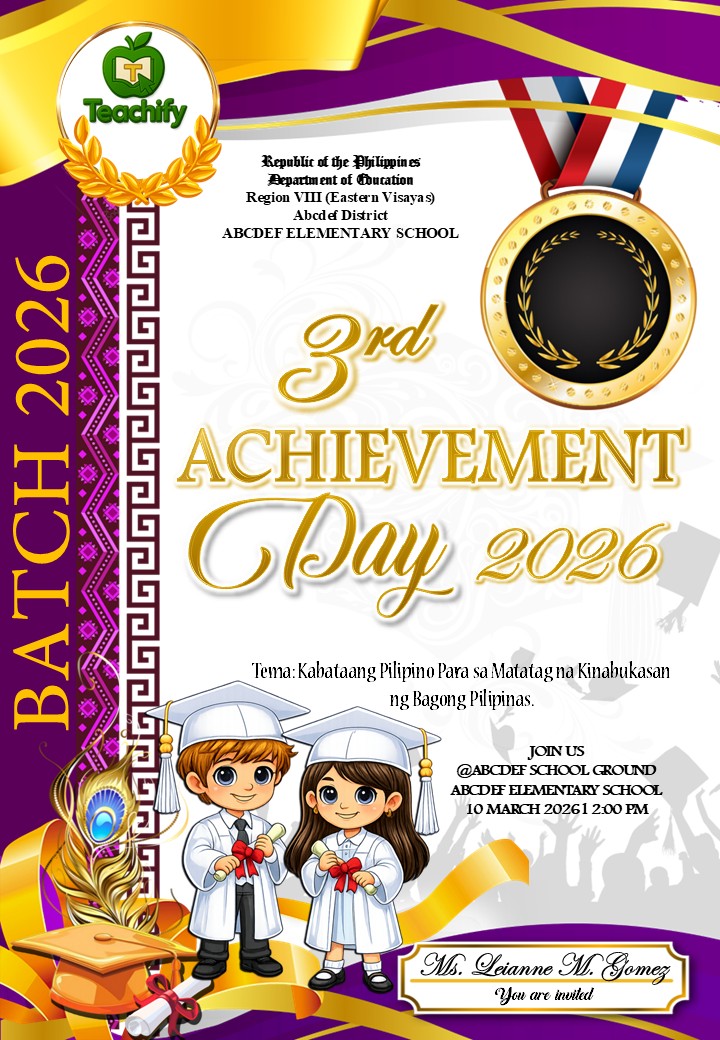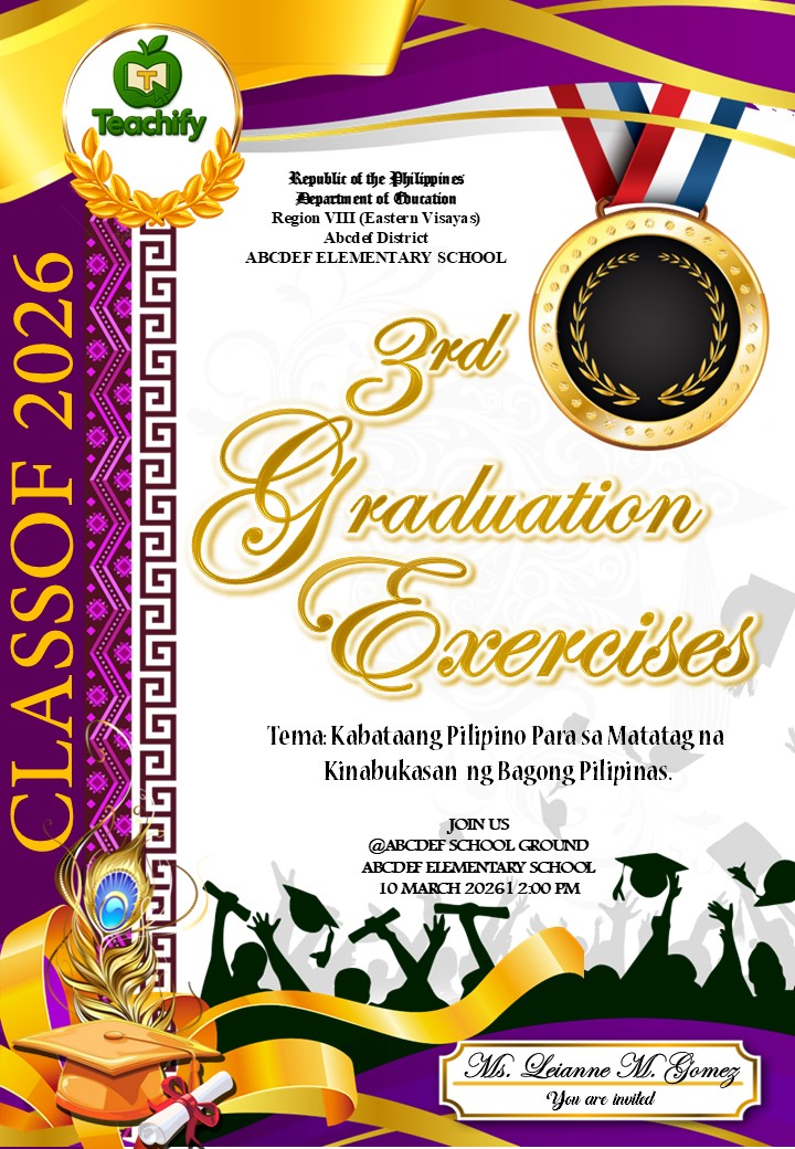 Honor academic milestones with regal elegance using the Purple Tribal Prestige Collection Invitation Templates—professionally designed for graduation, moving-up, recognition, and achievement programs. Featuring a rich purple palette accented with refined tribal-inspired elements, this collection represents wisdom, excellence, and prestige—perfect for formal and celebratory school events.