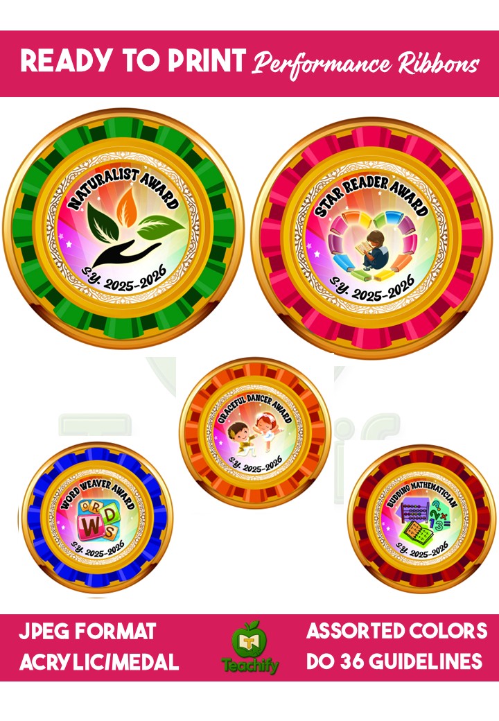 Make your awards more meaningful with 27 Performance Ribbons aligned with DepEd Order No. 36, s. 2016. Ready to print and ideal for public and private schools and any recognition ceremony!